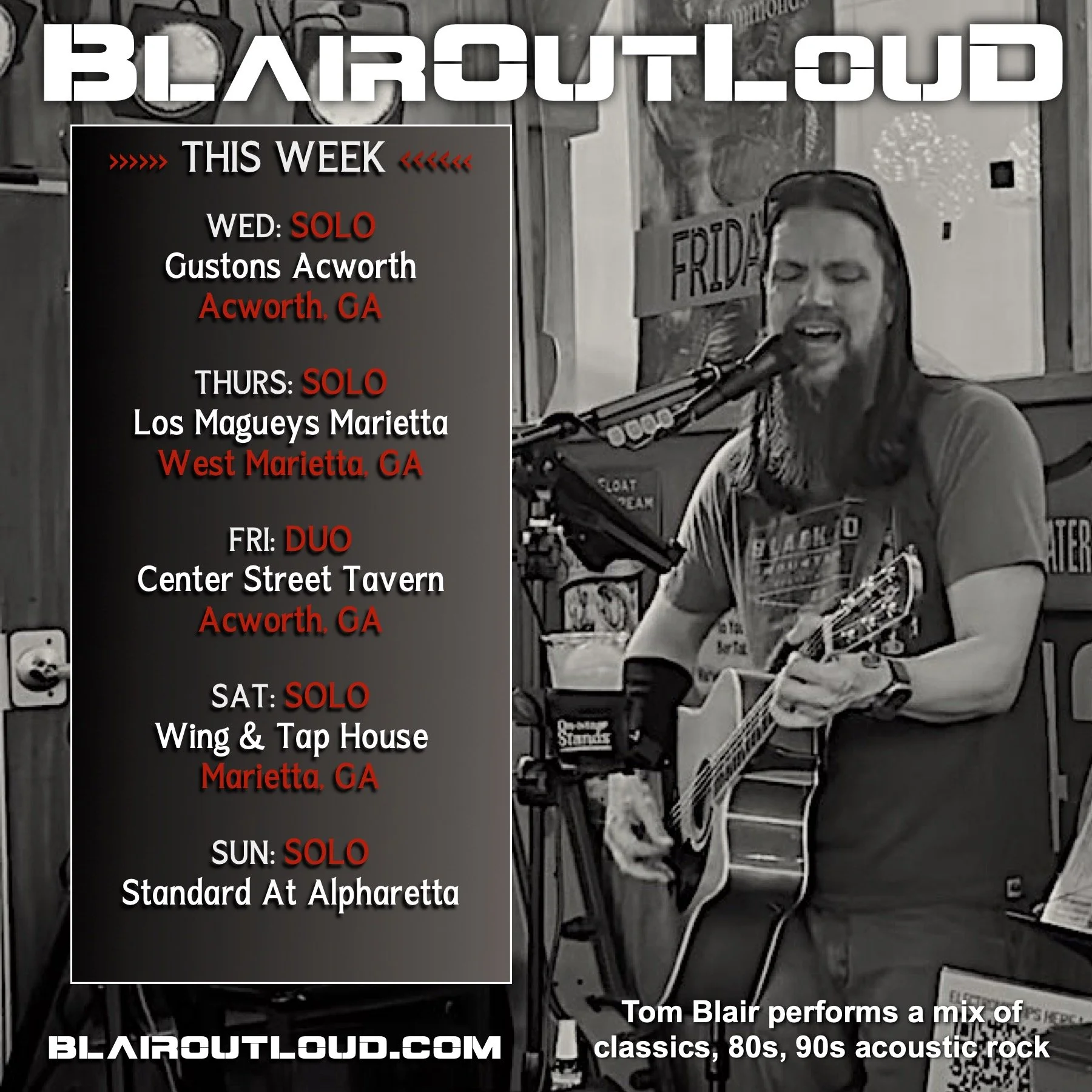 Friday, Amanda and I, the BlairOutLoud DUO will be performing at Center Street Tavern in downtown Acworth, GA from 8-11.