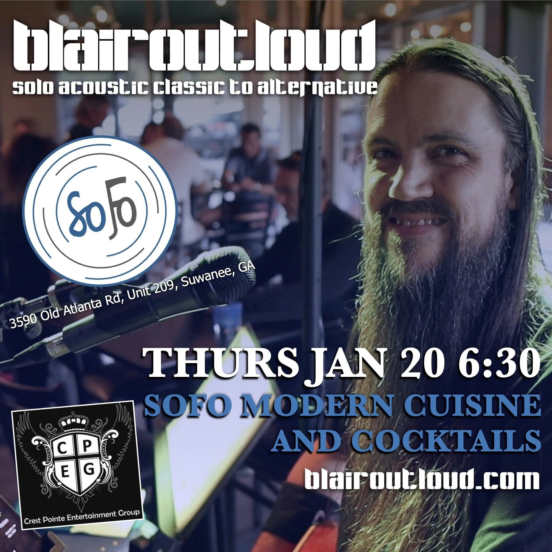 Live music performed by Tom of BlairOutLoud on Thursday January 20, 2022, beginning at 6:30 p.m. Music selection is a diverse collection of rock, pop, and blues from the 60s to today. Always energetic, always entertaining, always fun.. it’s BlairOutLoud!