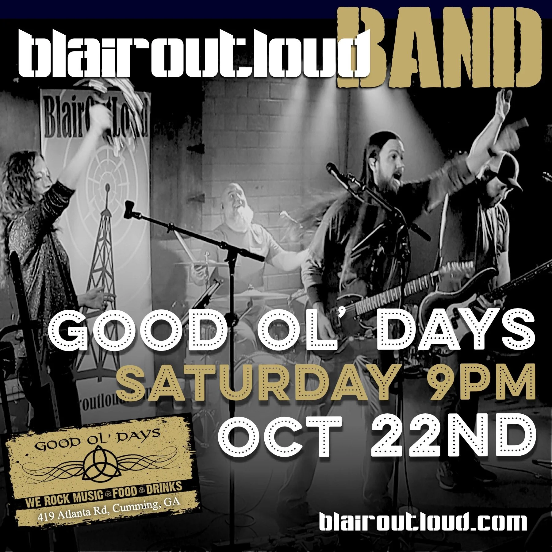 The BlairOutLoud BAND brings their high energy rock and roll show to Good Ol’ Days! Making a debut appearance on Saturday Oct 22nd, 2022.. BlairOutLoud BAND performs killer classic rock, danceable 80’s hits, and 90’s era alternative jams. With an original twist to the songs, mixed with fun instrumentation from Amanda Blair on keys, flute, and lead vocals, the party train is ready to jam Cumming, GA.. Come on out and have some fun!