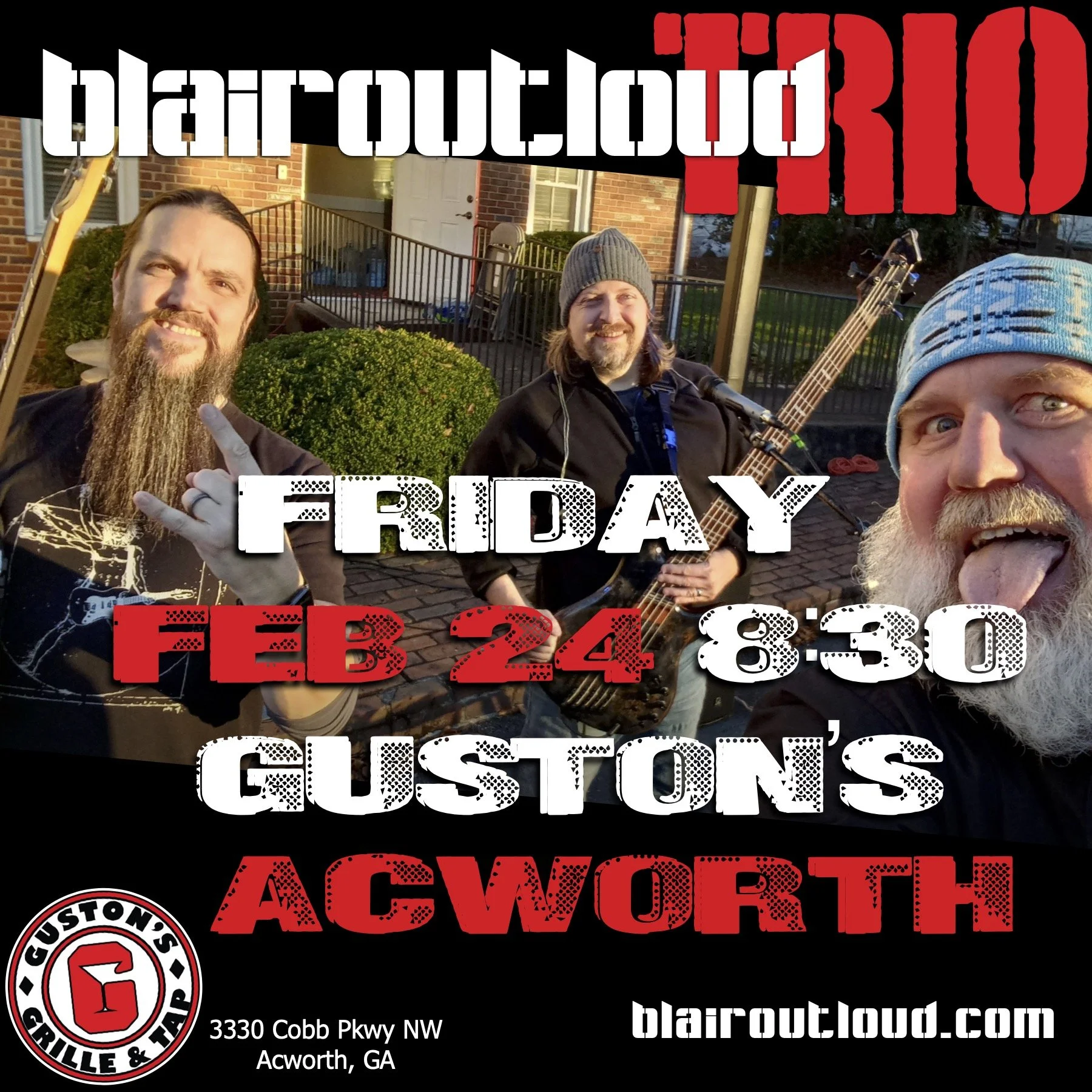The BlairOutLoud TRIO is coming to bring a couple of fun filled rock n roll sets to Guston’s Acworth! Never too serious, these guys jam classic rock favorites, 80s hits, and 90s alternative. They take requests from a huge songlist and engage with the crowd. Come grab some dinner, drinks, and sing along with the guys on this killer Friday night!