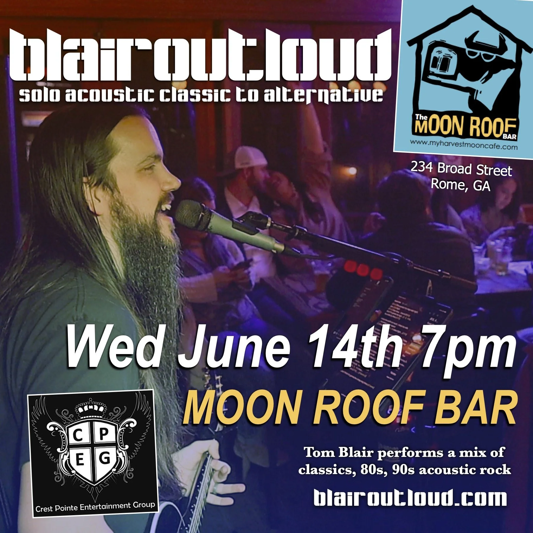 Tom from BlairOutLoud returns to jam for the Moon Roof on this fantastic Wednesday Night. Come get great food, drinks, and come enjoy great live acoustic rock tunes! Hump DAY! Event Sponsored by Crest Pointe Entertainment.